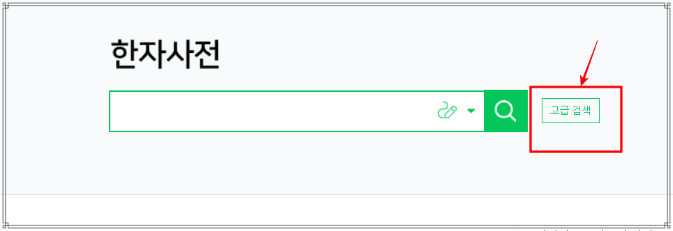 네이버 한자 사전 홈페이지에 방문하시면 위와 같은 첫 화면을 보게 됩니다. 검색창 우측의 [고급검색] 메뉴를 클릭합니다.
